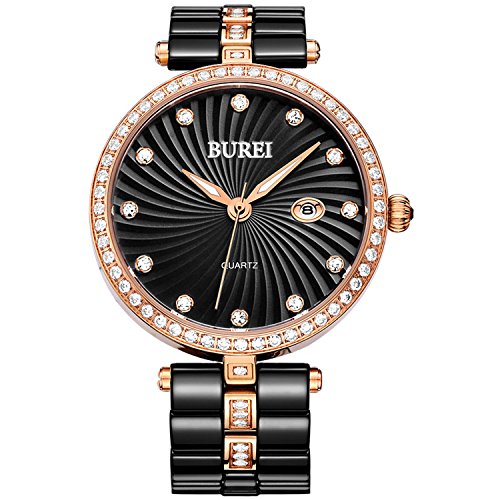 BUREI offer BUREI Ceramic Ladies Watches in Black with Crystal Dial and Date Calendar for Fashion Dress. This awesome product currently limited units, you can buy it now for £120.00 £49.99, You save £70.01