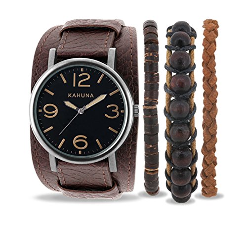Best Seller! Kahuna Men's Quartz Watch with Black Dial Analogue Display and Brown Leather Strap AKUC-0059G Review