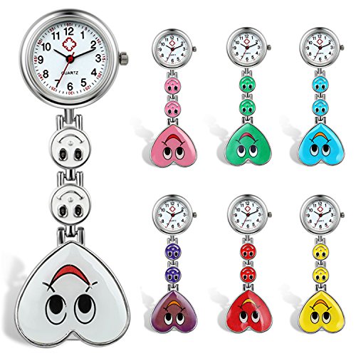 Best Seller! Lancardo Candy Color Smile Heart Face Nurse Clip Watch Medical Lapel Pocket Clasp Watch(Pack Of 7) Review