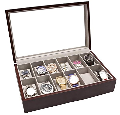 case Elegance offer Solid Espresso 12 Slot Wood Watch Box Organizer with Glass Display Top by Case Elegance. This awesome product currently limited units, you can buy it now for £59.77 £33.77, You save £26