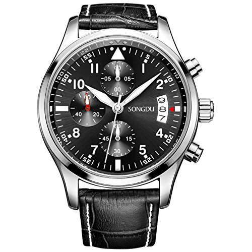 New Product for Big Promotion!!! Feedback to all Watches Lovers and One Month Limited Price!!! More Pretty Models Please Browse SONGDU Watch Store Product Highlights: -Chronograph Date display Multi-Function; -High Quality Japanese Quartz Movement,shock resistant; -Water resistant to 98 feet(30M); -Waterproof Calfskin Leather Strap with Buckle; -Business casual and popular fashion,Fitting for Most Occasions; -Protective Scratch-Resistant Mineral Crystal Lens; Customer Service: 30 Days Money Back Guarantee for Any Reason. 12 Months Replacement or Full Refund for any Quality Issues. 24 months Maintenance for Quality Issues. 24 x 7 E-mail Technical Support. Attention: SONGDU WATCHES are the best gifts for your friends and families. Nice celebrative price on Black Friday Deals and New Year Sales for customers' wish list is NEW and LIVE now.Get great prices on the hottest gifts.We celebrate it and you join us!